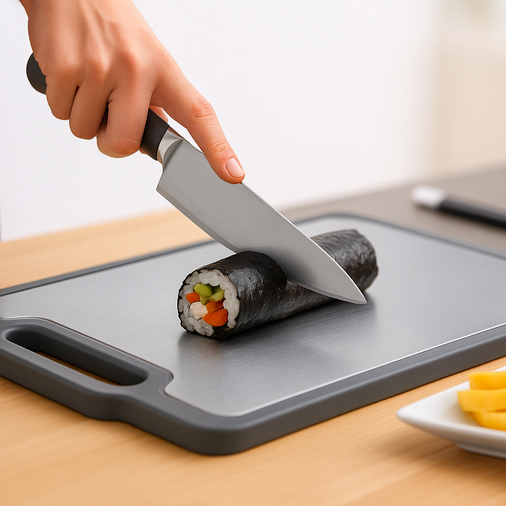 The TitanX® Cutting Board is engineered to be durable yet gentle on blade edges. This keeps your knife sharp for longer and makes cutting more comfortable and precise. You don’t have to worry that frequent chopping will dull your kitchen tools. It’s simply more practical and economical.