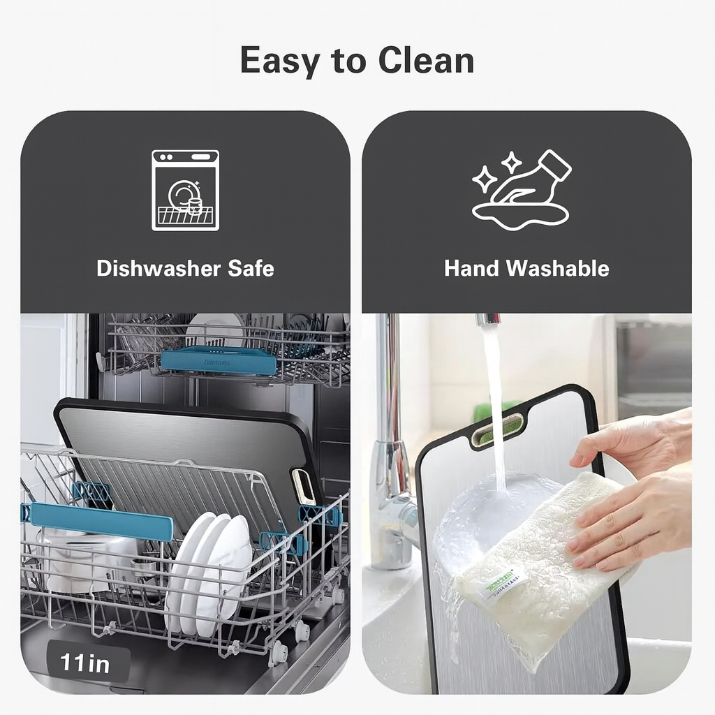 Titanium doesn’t crack, chip, or wear out like regular cutting boards. You buy it once and it can serve you for many years, no matter how often you use it. It’s an investment in durability and everyday kitchen safety. Simply put - a product that doesn’t need replacing
